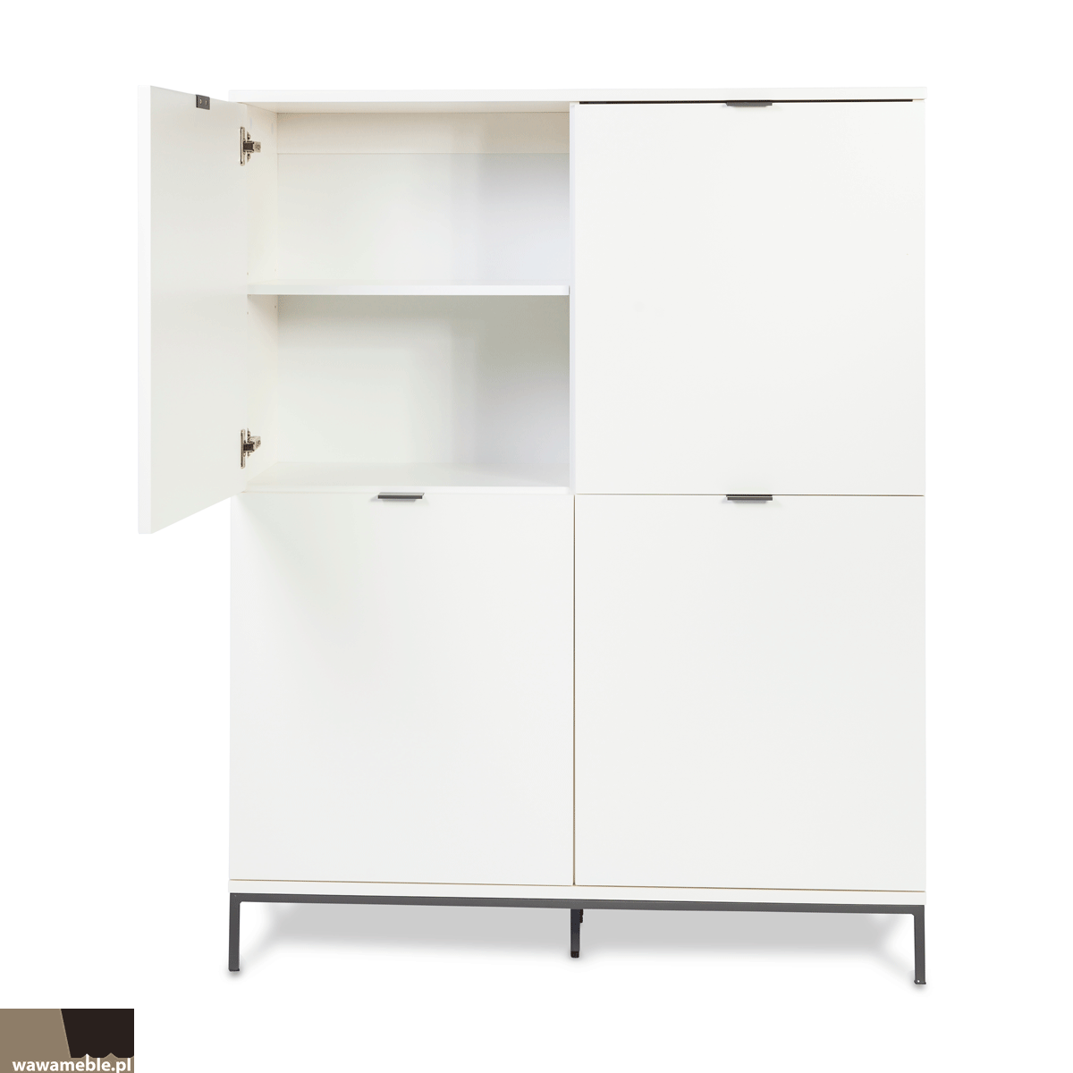 | Opis dodatkowy | Minimalistyczna forma do mieszkań i biur. 4 drzwiczki ,4 półki wewnętrzne,nogi stalowe,lakier czarny mat. |