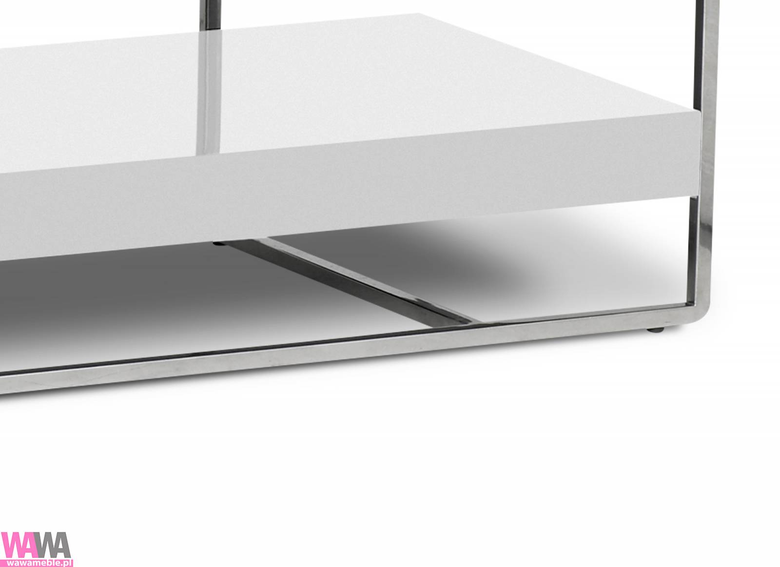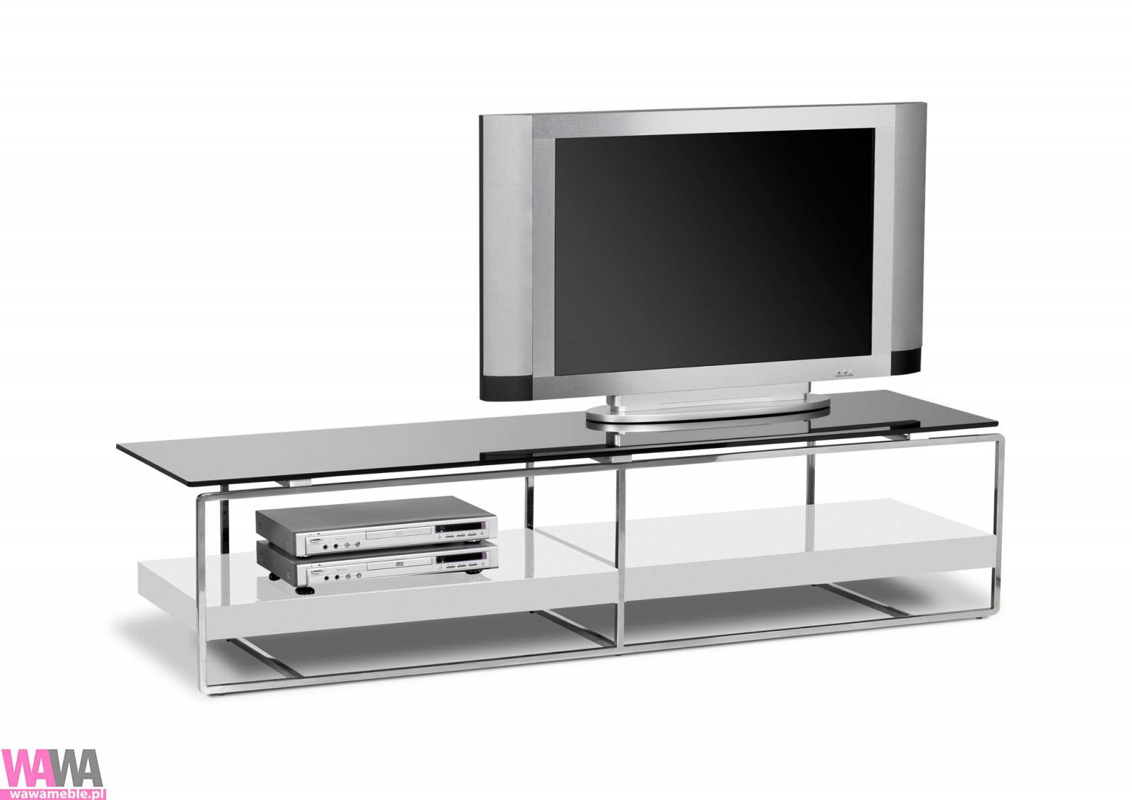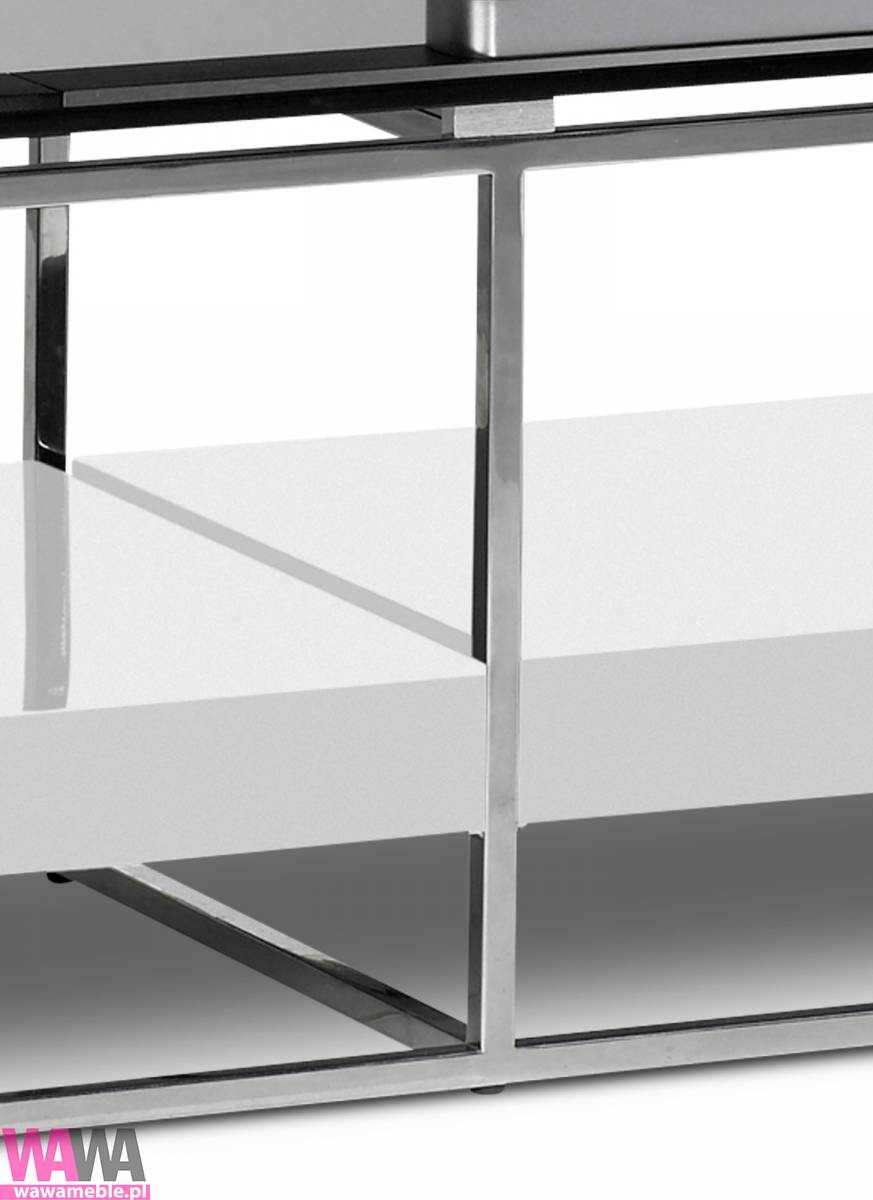 | Opis dodatkowy | Nowoczesna szafka RTV. Połączenie lakierowanych na połysk białych blatów z konstrukcją ze stali nierdzewnej. Górny blat z czarnego hartowanego szkła. Do nowoczesnych i tradycyjnych wnętrz. |