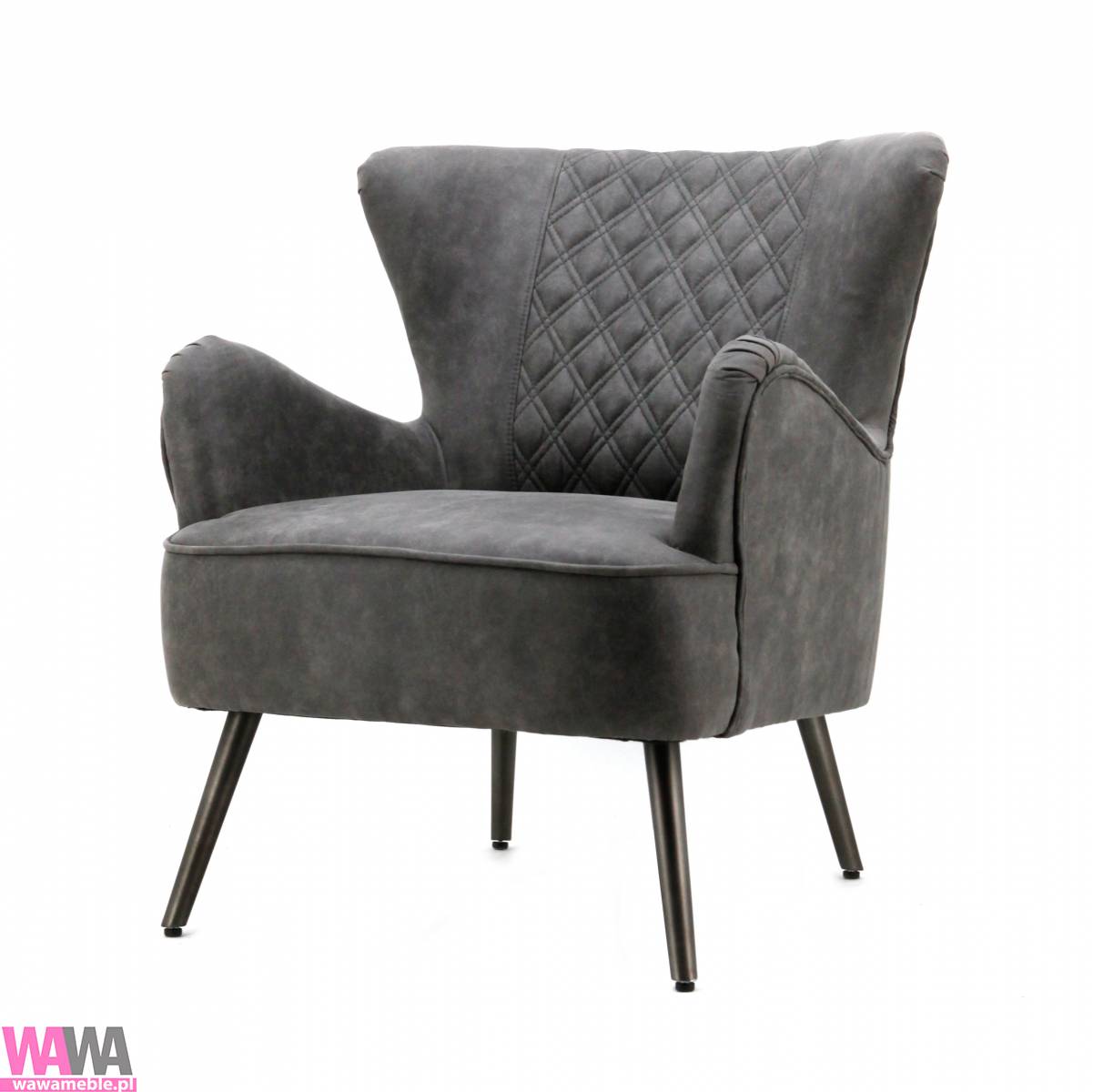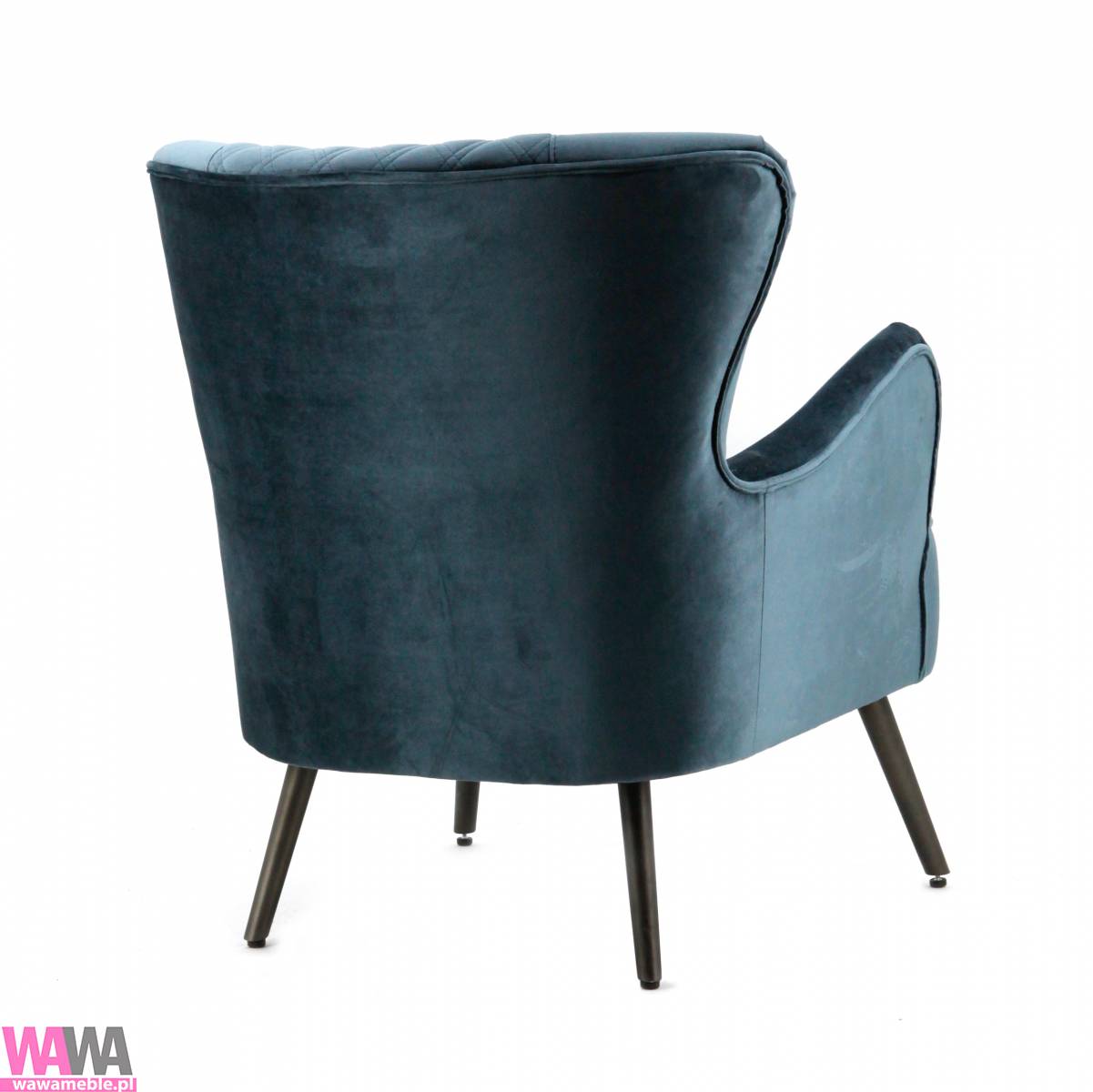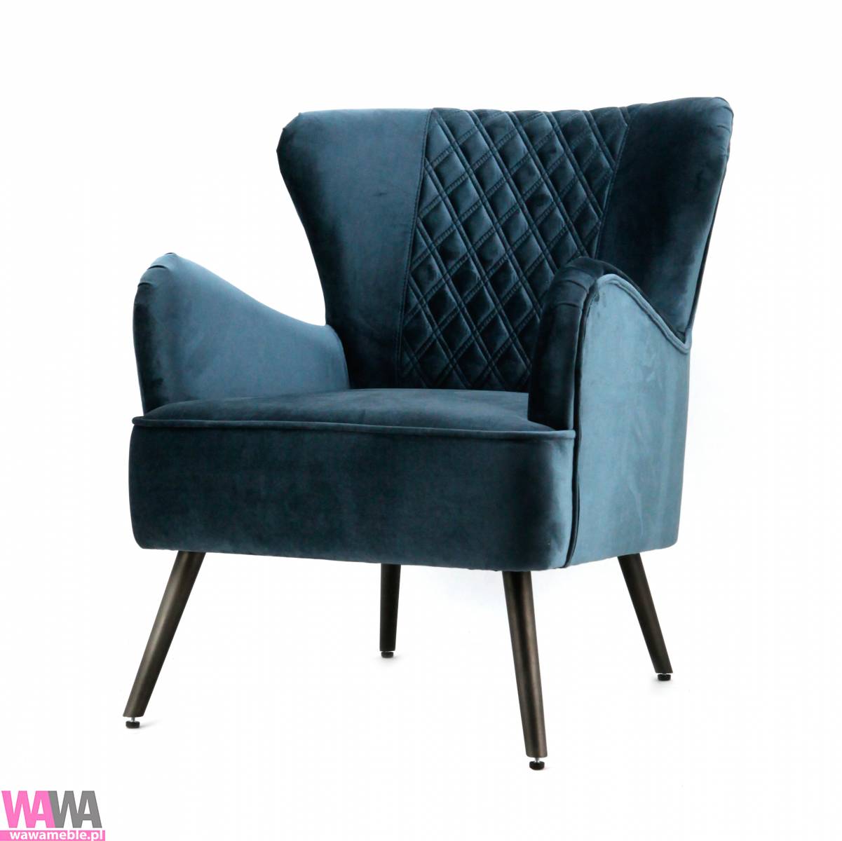 | Opis dodatkowy | Fotel Daisy to propozycja niczym z amerykańskiego serialu. Tego rodzaju meble często można było zauważyć w wielu amerykańskich produkcjach. Fotel łączy w sobie wygodę użytkowania, dużą funkcjonalność oraz atrakcyjny design. Nietypowy kształt podłokietników i oparcia dodaje całości stylu i klasy. Ciekawym dekorem jest pikowane oparcie. Mebel umieszczony został na czterech metalowych nogach, zaprojektowanych pod kątem. Rozwiązanie to sprawia, że fotel jest bardziej stabilny i prezentuje się niezwykle lekko. Kolor obicia: granatowy. Wysokość podłokietnika 64 cm ,wysokość siedziska 45 cm. |
