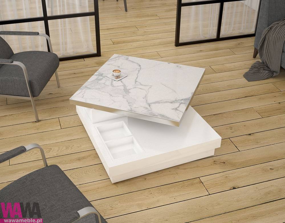 | Opis dodatkowy | Stolik kawowy Sigma One MDF lakierowany w kolorze białym,blat z płyty ceramicznej(spiek) imitującej marmur. Stanowi połączenie stylu prostego oraz nowoczesnego. Jest niezwykle funkcjonalnym rozwiązaniem. Składa się z obrotowego blatu, który pozwoli stworzyć wiele kombinacji.-powiększających powierzchnię stolika. Dodatkowo wyposażony jest w niewielkie przegródki umieszczone w podstawie, które idealnie pełnić będą funkcję małych schowków. Mebel świetnie wkomponuje się we większość wnętrz utrzymanych w stylu prostym, nowoczesnym, minimalistycznym czy nawet klasycznym. Dostępny również w kolorze białym+białe szkło hartowane. wymiary: 80(120)X80X35 CM Produkty firmy Akante są personalizowane i wykonywane na zamówienie. |