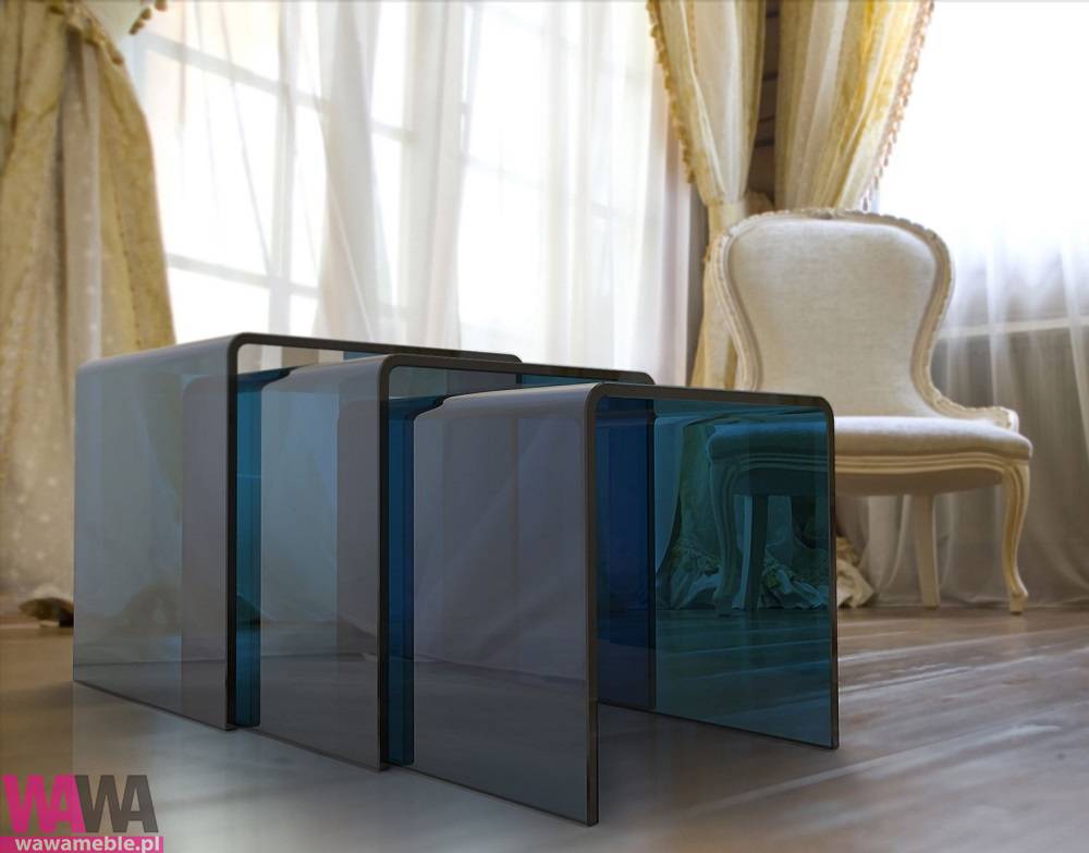 | Model | Zestaw trzech stolików Olivea szkło gięte niebieskie |