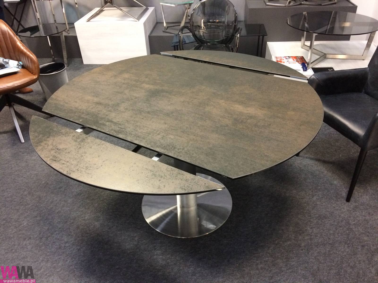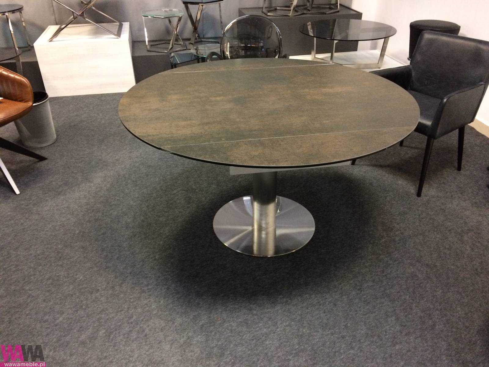 | Opis dodatkowy | Stół rozkładany Lea stal nierdzewna szczotkowana, płyta ceramiczna w różnych kolorach i fakturach. Mebel stanowi ciekawe uzupełnienie wielu wnętrz - od jadalni, po gabinety. Składa się z eliptycznego blatu,który po rozłożeniu tworzy regularne koło o średnicy 135 cm. W łatwy sposób poprzez mechanizm wysuwający dołączymy dwie dodatkowe części. Stół oparty na stabilnej pojedynczej nodze z podstawą. Łączy w sobie styl nowoczesny z nutą industrializmu. Został wykonany z najwyższej jakości materiałów. Sam w sobie stanowi niebanalny element dekoracyjny w pomieszczeniu, w którym się znajduje. Dostępny również w wersji: szkło matowione białe, beżowo-perłowe, płyta ceramiczna: stal industrialna, marmur, piaskowiec. Zobacz jak perfekcyjnie działa rozkładanie stołu: https://www.youtube.com/watch?v=x-z5YAbQTuk wymiary: 135/90x135x76 CM oraz 150/90x135x76 cm |
