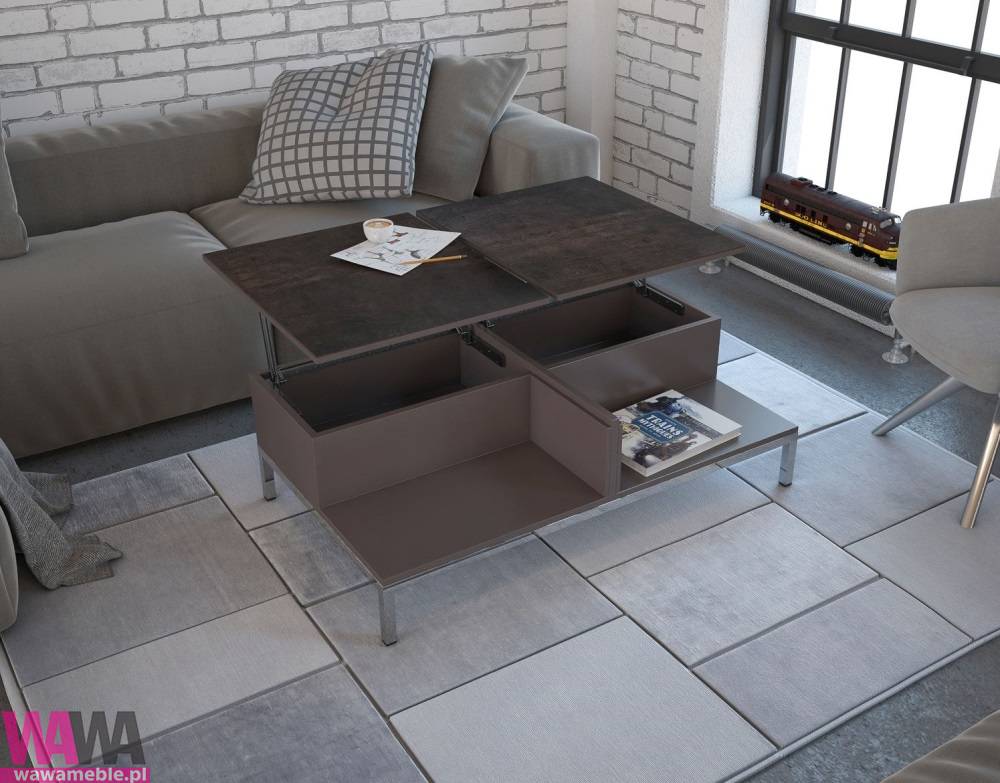 | Opis dodatkowy | Stolik kawowy Arizona lakierowany MDF w kolorze stalowo-brązowym, płyta ceramiczna w kolorze industrialnej stali.Wyjątkowo funkcjonalny stolik. To niebanalne połączenie, które zawiera w sobie typowy stolik kawowy, półki będące podręcznym schowkami oraz możliwość podniesienia blatu dla łatwiejszej i przyjemniejszej pracy.Podwójna płyta ceramiczna pozwala na podnoszenie jednego lub dwóch blatów na raz. Mebel idealnie wkomponuje się we wnętrza utrzymane w stylu nowoczesnym, minimalistycznym, modernistycznym, prostym. Niebanalny design stolika sprawi, że sam w sobie stanowi element dekoracyjny nadający wnętrzu charakteru. wymiary:120X70X40 CM |